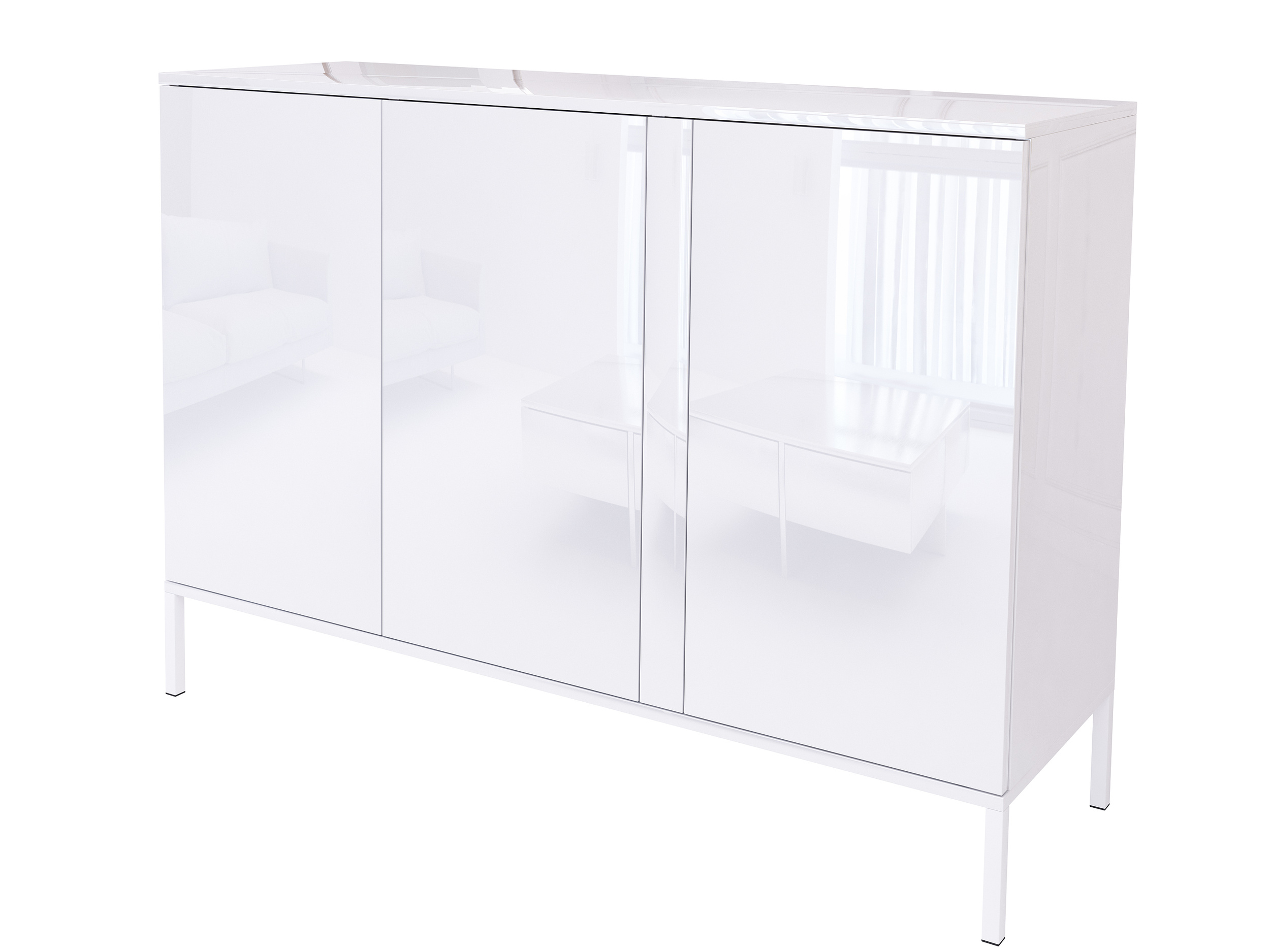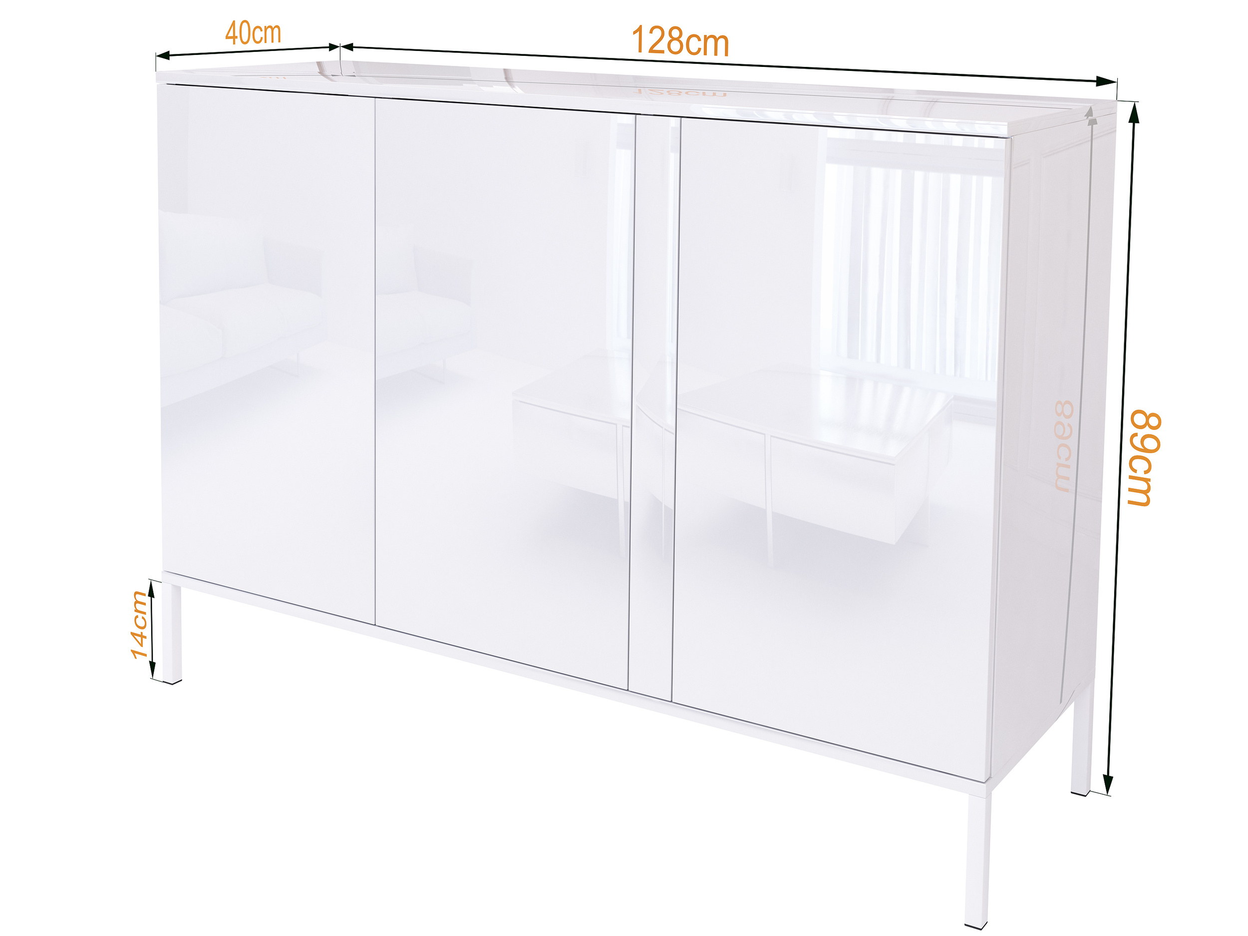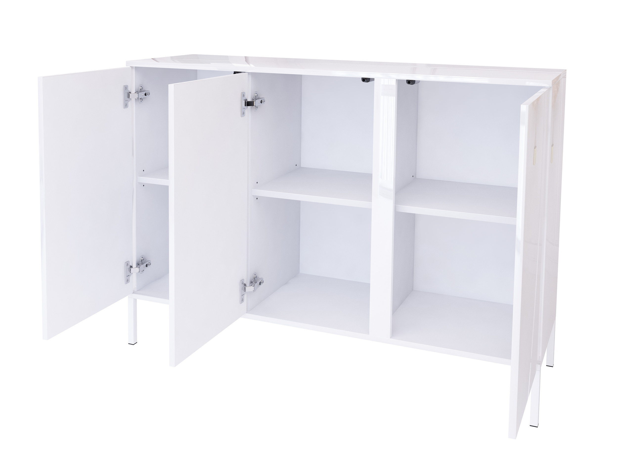 Komoda Galicja 128 cm biały połysk / białe nóżki - trzydrzwiowa biała