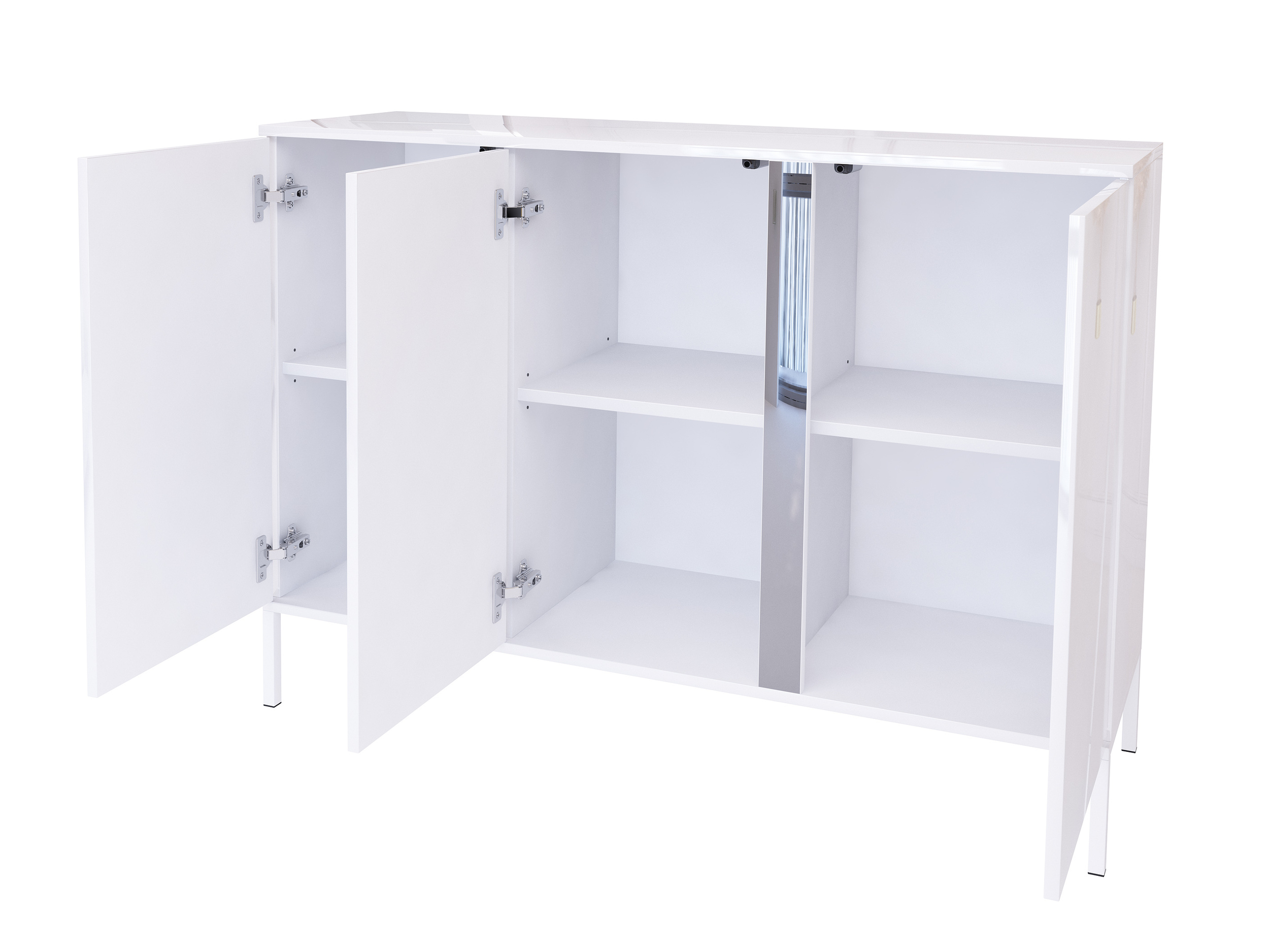 Komoda Galicja 128 cm biały połysk z lustrem - trzydrzwiowa biała
