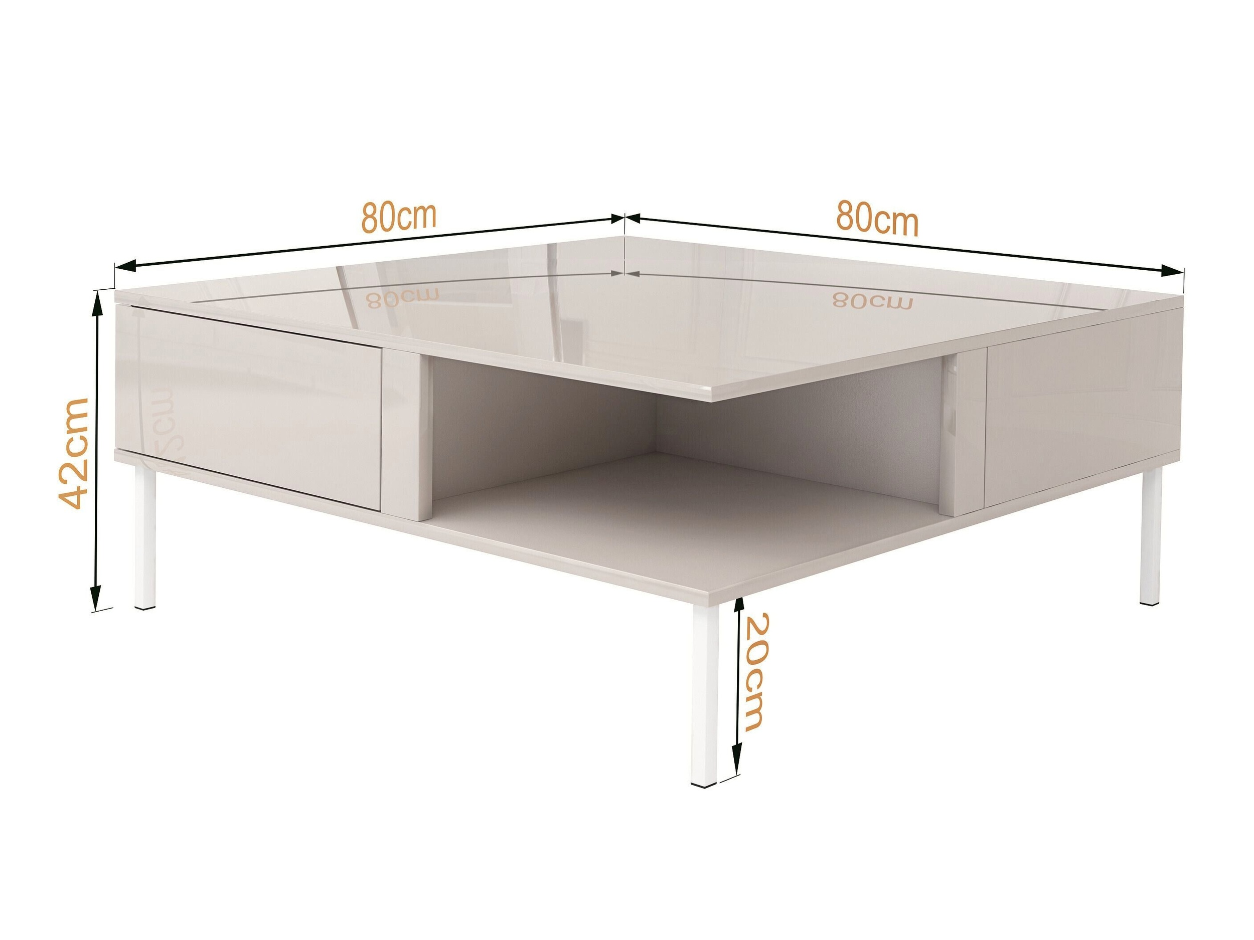 - - blat i boki stolika wykonane z MDF-u w kolorze kaszmir wysoki połysk