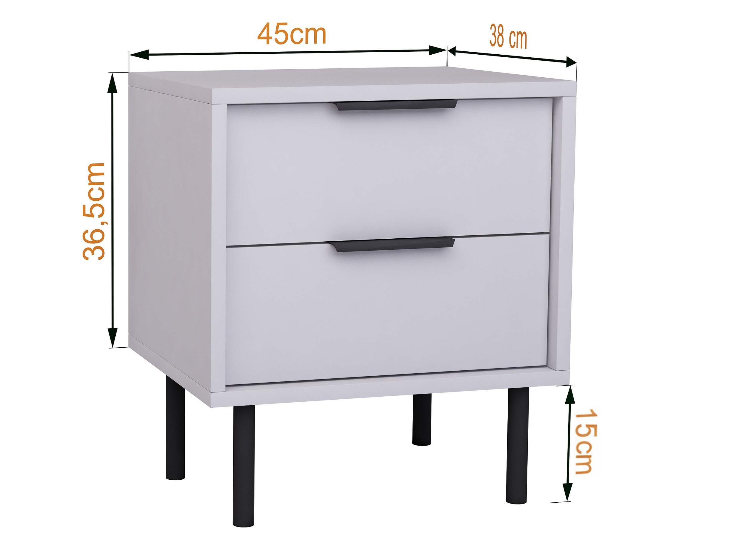 Wyróżnikiem stolika nocnego Cala są szuflady wyposażone w zaawansowany mechanizm cichego domyku. Dzięki niemu, szuflady zamykają się płynnie i bezszelestnie, co zapewnia wygodę użytkowania. Szafka nocna posiada również ergonomiczne uchwyty na frontach, umożliwiające łatwe ich otwieranie i zamykanie.