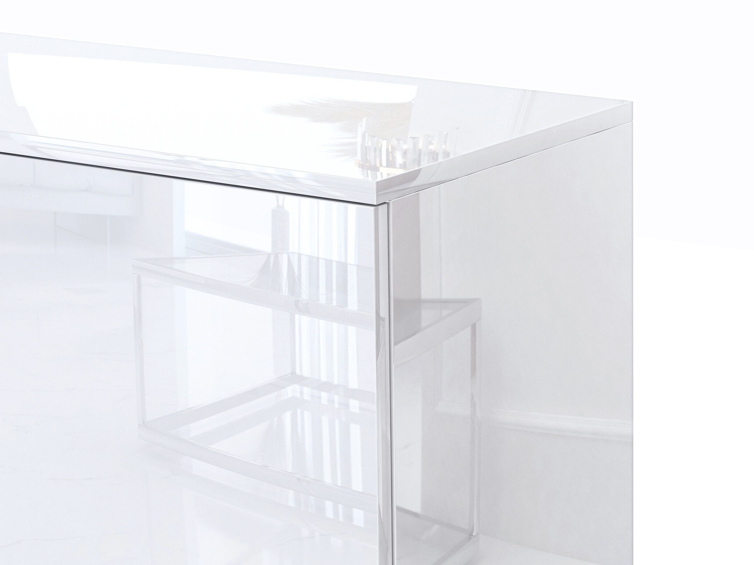Witryna biały wysoki połysk - nowoczesna, elegancka witryna do salonu z push to open