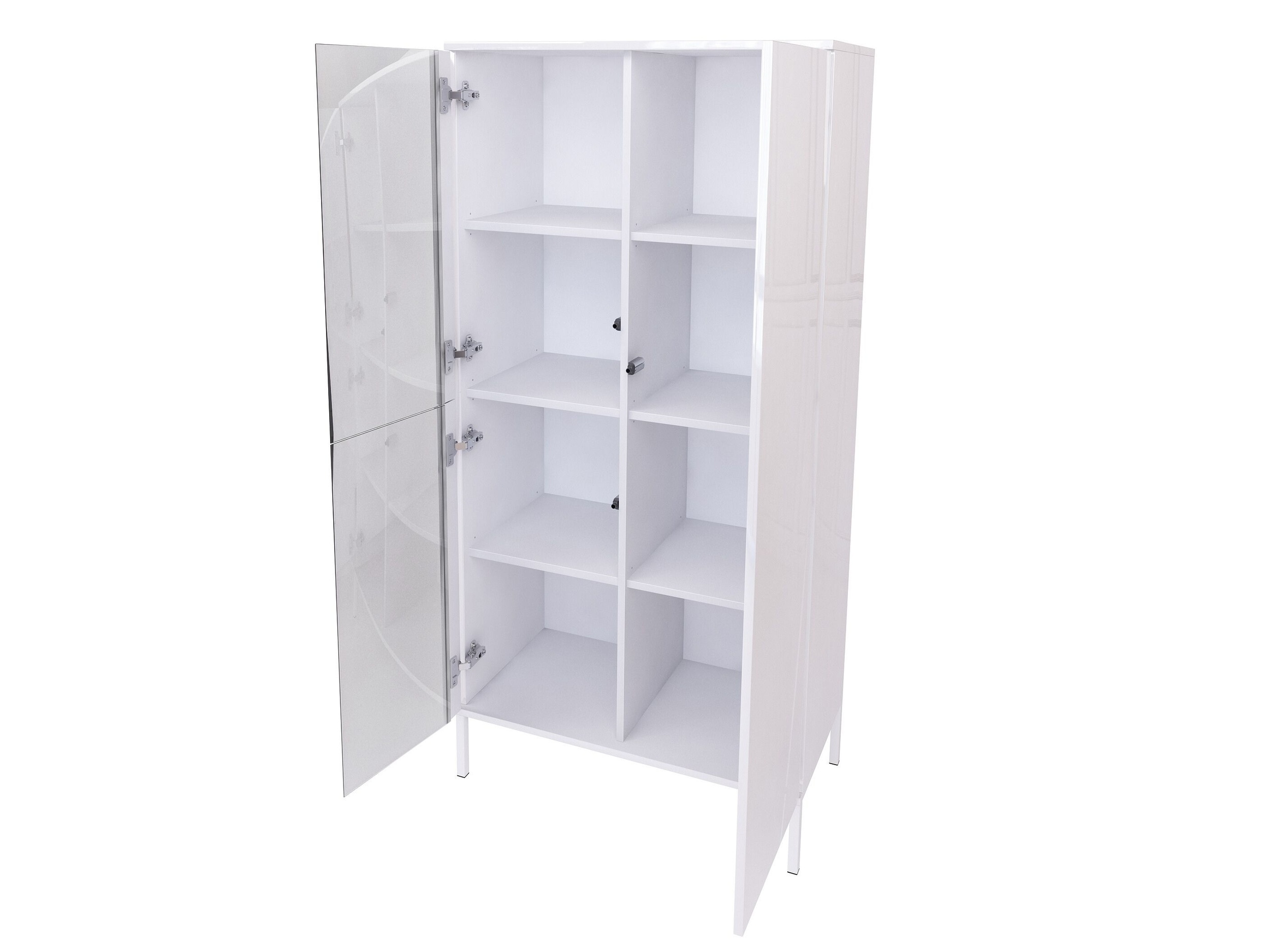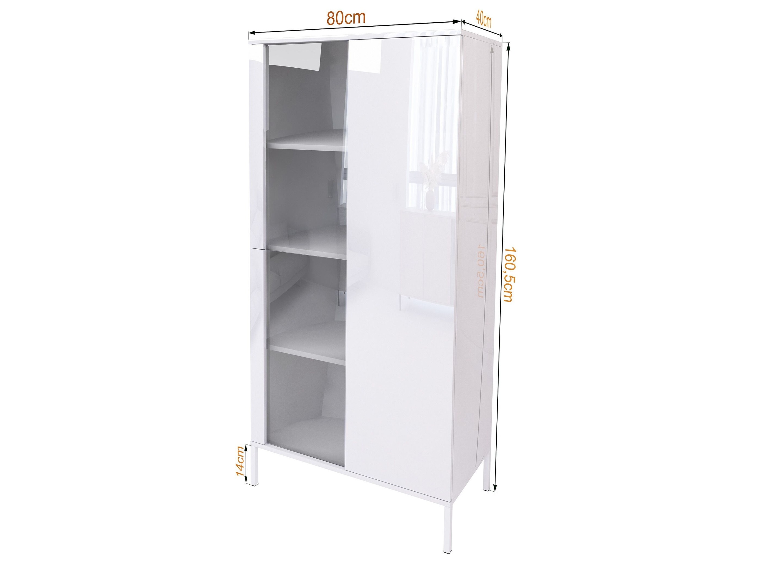 Witryna biała wysoki połysk to elegancki mebel do nowoczesnych wnętrz. Model świetnie sprawdzi się jako witryna do salonu, jadalni lub biura, łącząc estetykę z praktycznym przechowywaniem. Boki, blat i fronty w białym wysokim połysku optycznie rozjaśniają pomieszczenie i podkreślają minimalistyczny styl.