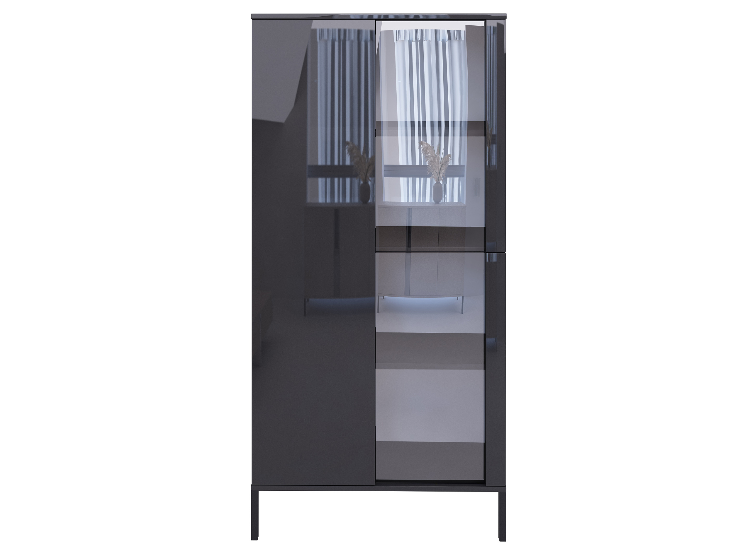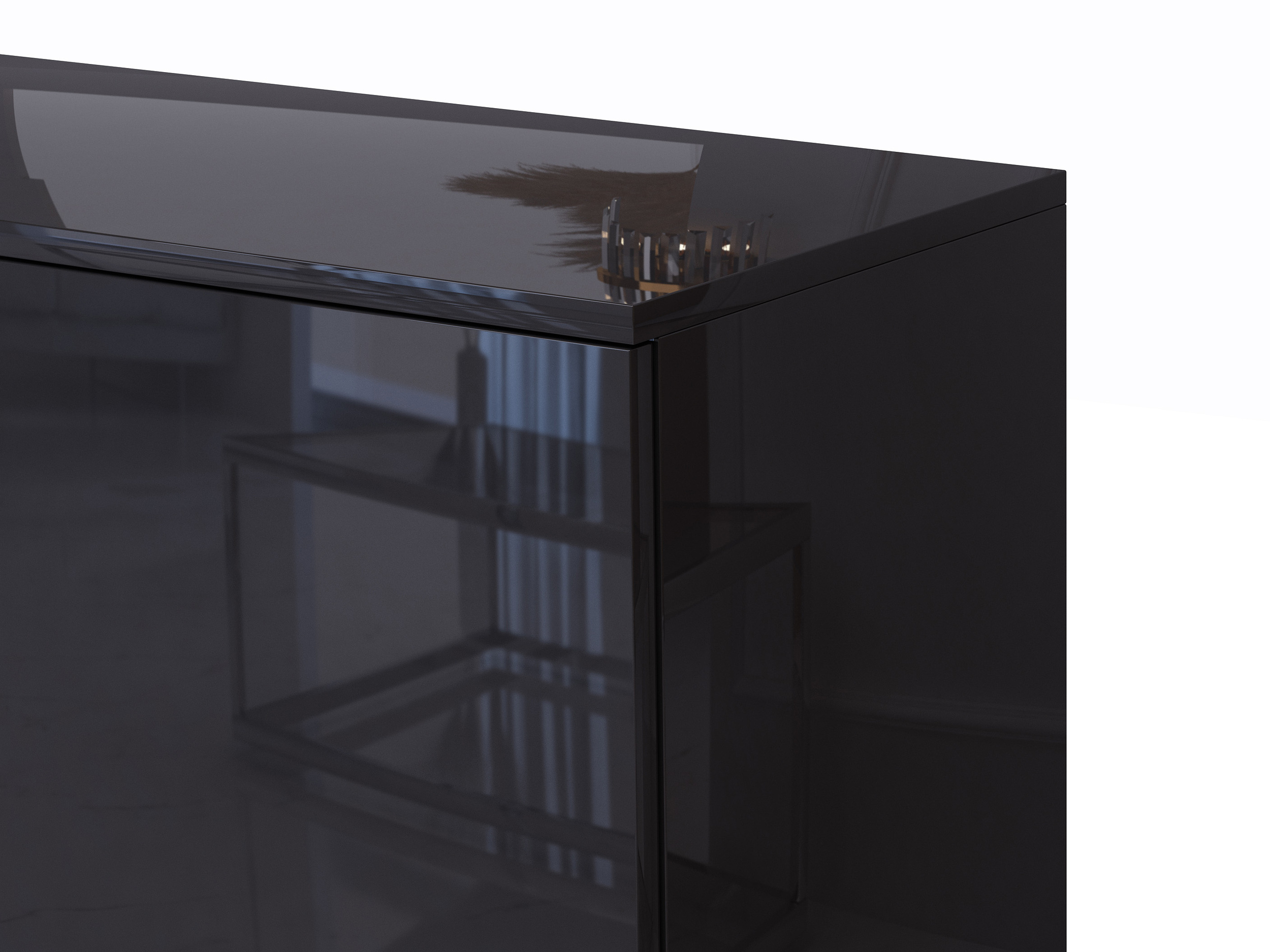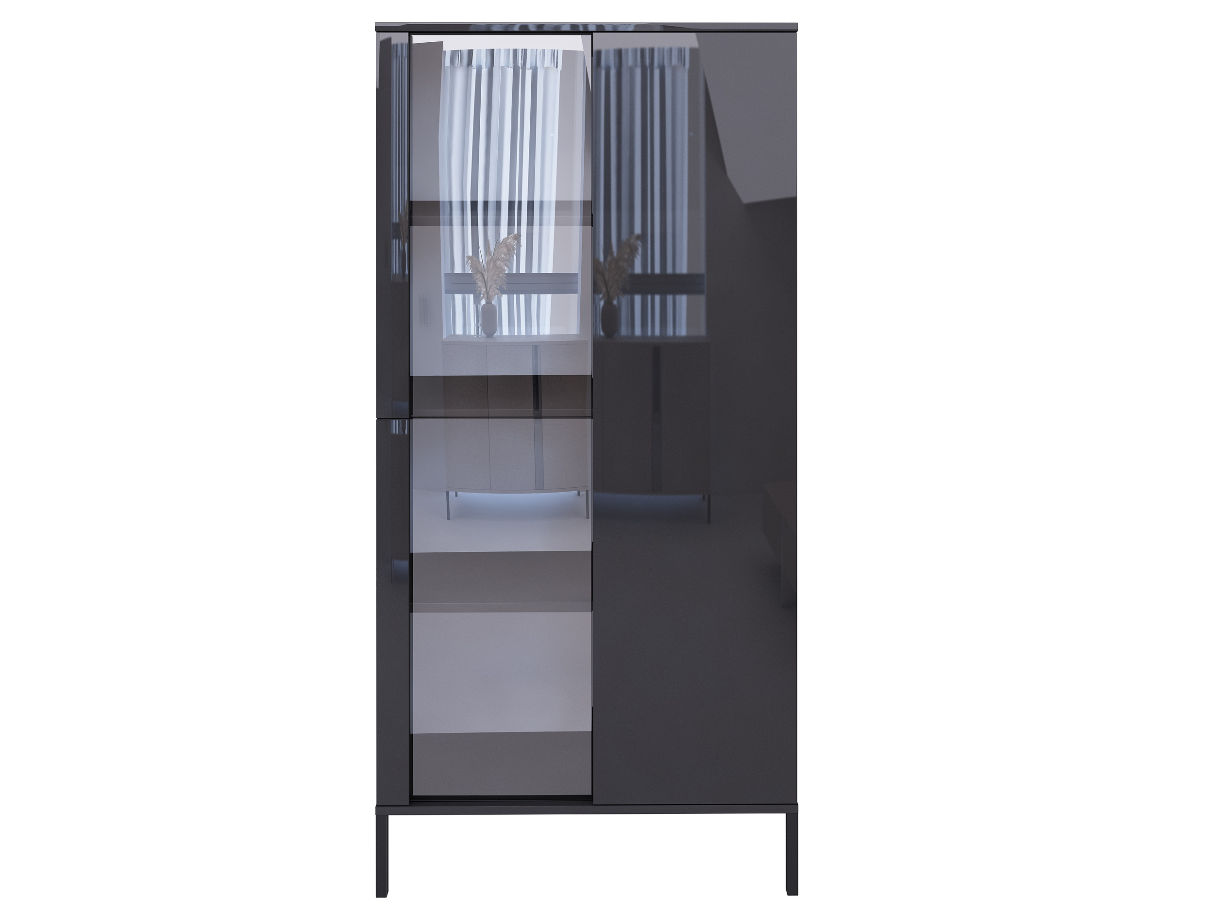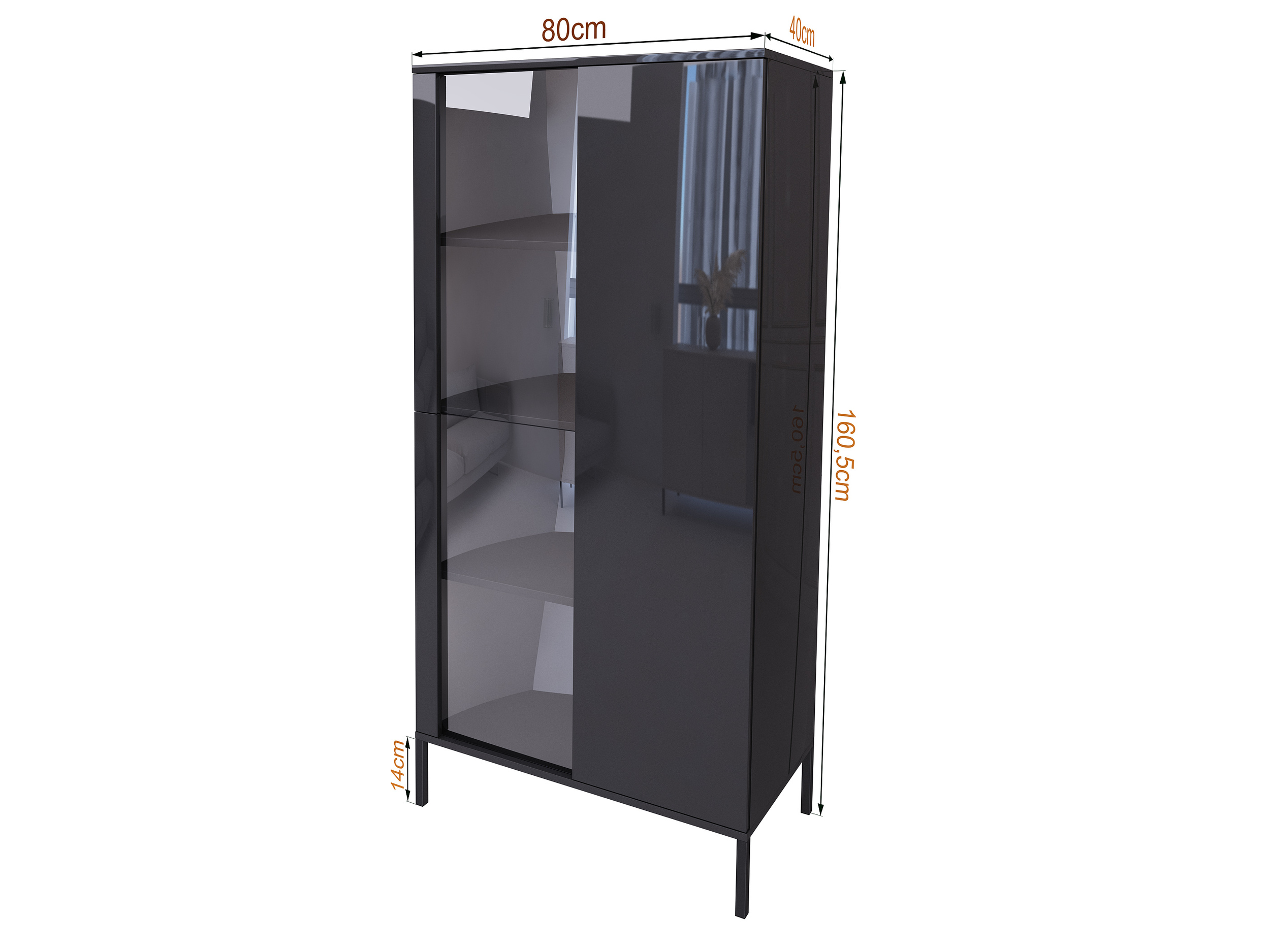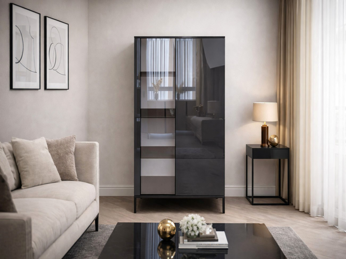 Witryna czarna wysoki połysk to elegancki i nowoczesny mebel stworzony do stylowych wnętrz. Idealnie sprawdzi się jako witryna do salonu, jadalni lub biura, oferując funkcjonalne miejsce do przechowywania i ekspozycji. Boki, blat oraz fronty w czarnym wysokim połysku nadają bryle luksusowy i wyrazisty charakter.