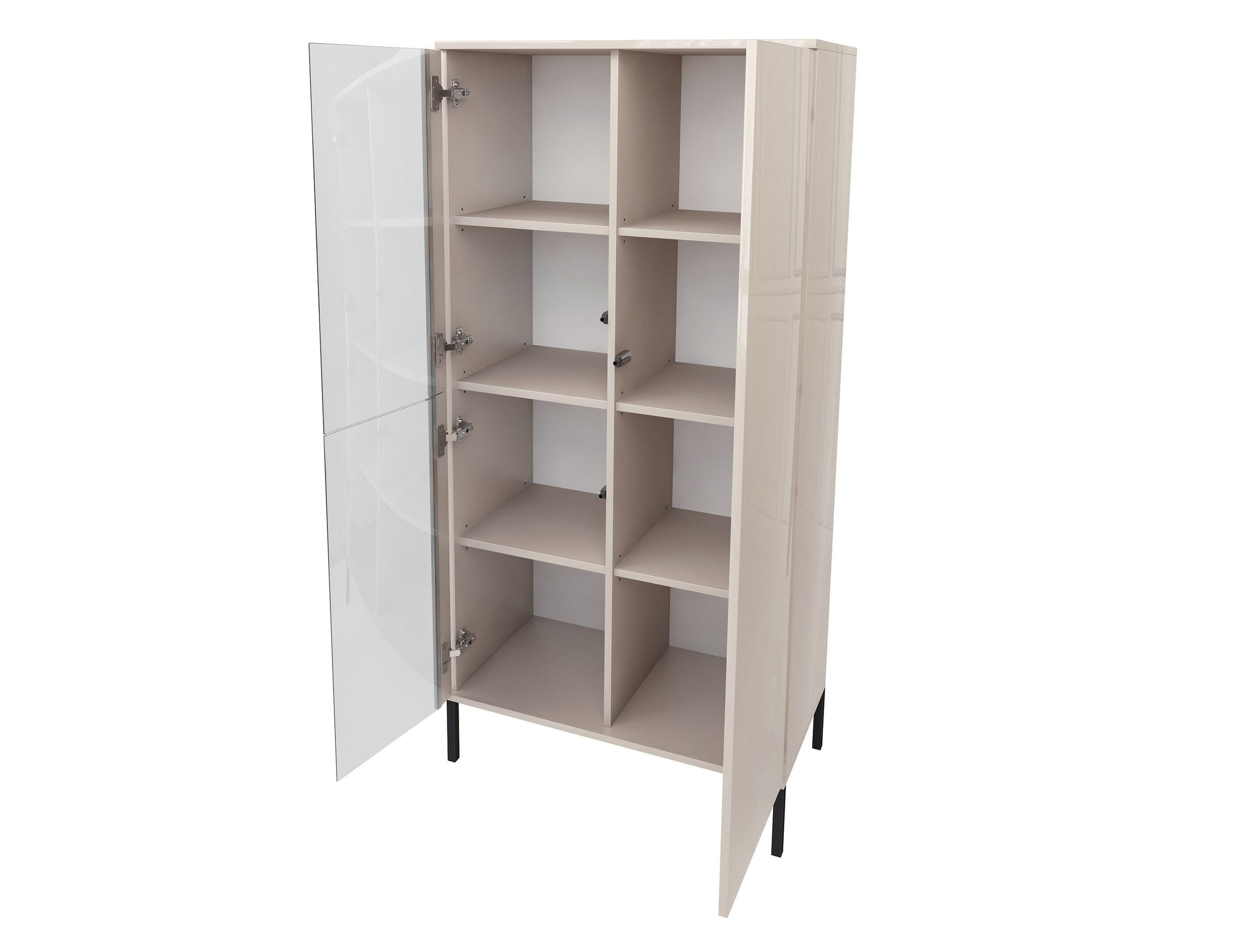 Witryna szklana Galicja w kolorze Beż / Kaszmir w wysokim połysku / czarne nóżki 160cm
